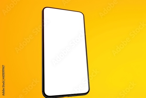 mobile phone, smartphone with blank screen isolated on a yellow colored background