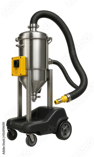 Mobile vacuum loader with a wheeled base and extendable hose for flexible use in a polymer processing plant