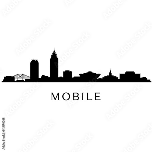 Mobile with Alabama Skyline Cityscape Silhouette.