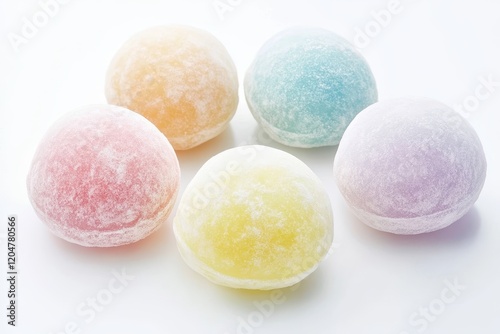 Mochi is a soft sticky Japanese rice cake shaped into a round form and comes in various colors