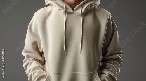 mock up cream fleece hoodie, isolated on gray background, Ai generated Images