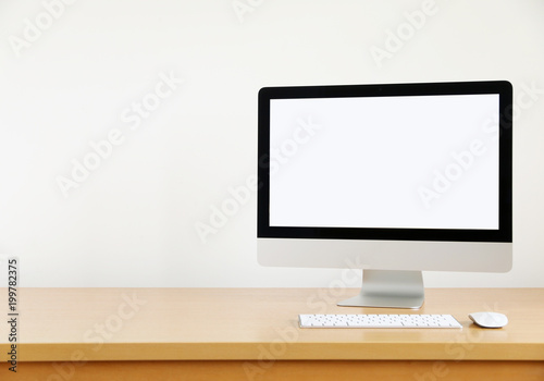 mock up front view blank screen Computer Desktop PC. for business on work table