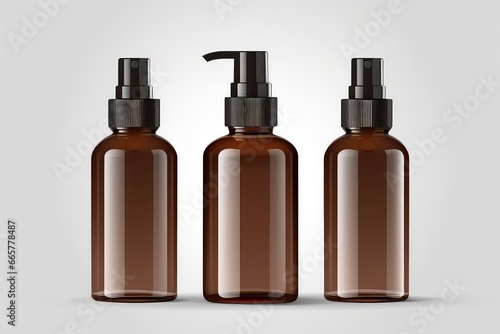 Mockup Highlights Brown Skincare Bottle Set Against Transparent Background