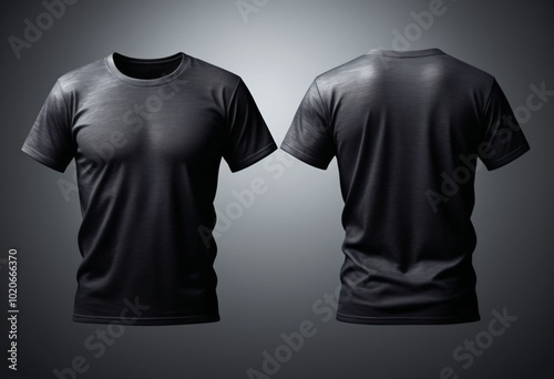 mockup of a black male t-shirt displayed against on a light background, front and back view
