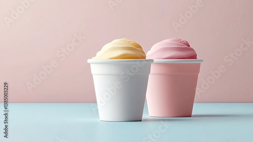 mockup of a blank, Paper Ice Cream Cup Mockup, Ice Cream Cup, two cup, photo realistic,