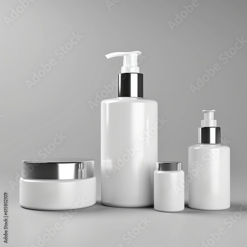 Mockup of Blank Set of White Cosmetic Products
