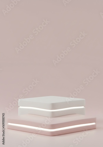 pedestal, display, stage, platform, product, showcase, minimalist, modern, geometric, abstract, studio, lighting, soft, clean, simple, elegant, luxury, beauty, cosmetic, fashion, retail, presentation, advertisement, marketing, concept, design, render, three-dimensional, computer, generated, art, interior, decor, architecture, shape, form, outline, glow, illumination, smooth, rounded, pastel, pink, neutral