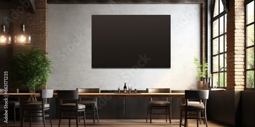 Mockup of vertical empty poster in Loft bar interior