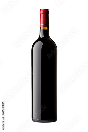 Mockup red wine bottle without label isolated on a clipped PNG transparent background