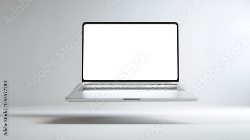 mockup,Floating Laptop with Blank Screen on White Background for Display