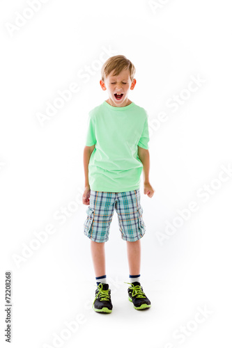 children, angry, boy, casual attire, casual clothes, caucasian, copy space, cut-out, full-length, furious, green, photogenic, isolated, isolated on white, children, loud, model, one person, people, person, scream, screaming, short, standing, student, studio shot, t-shirt, teenage, upset, white background, young