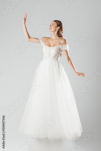 model, dress, fashion, showcase, white, gown, elegant, pose, beauty, minimalism, design, clothing, fabric, studio, portrait, coiffure, style, attire, movement, artistry, femininity, aesthetic, flair, craftsmanship, chic, curve, light, expression, creative, posing, inspiration, trend, modern, graceful, simplicity, tailoring, silhouette, runway, detail, atmosphere, stunning, visual, elegance, presentation, outfit, sewing, garment, bridal