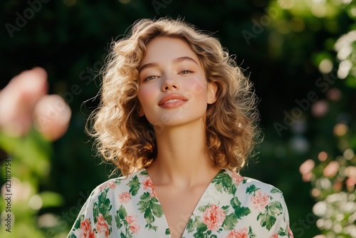 model, fashion, dress, sage, floral, elegant, stylish, trendy, outfit, clothing, feminine, chic, modern, beauty, graceful, spring, summer, casual attire, sophisticated, aesthetic, design, delicate, patterned, portrait, boutique, clothes rack, contemporary