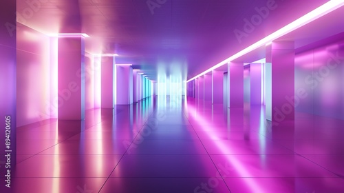 Modern 3D render with vibrant purple and pink lights on a reflective floor