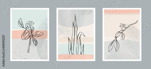 Modern abstract leaves line art background with different shapes for wall decoration, postcard or brochure cover design. Vector design