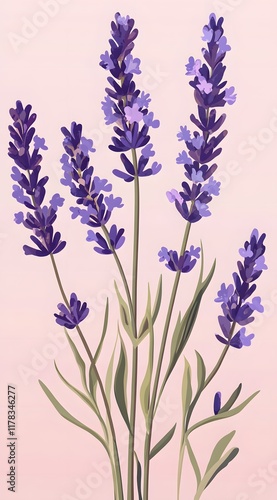 modern and colorful illustration of beautiful lavender flowers on a white background