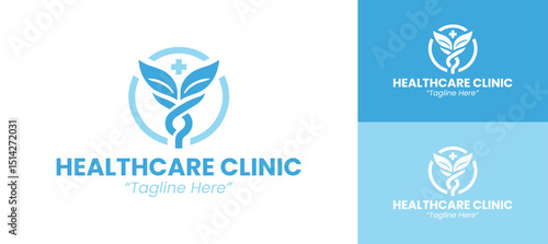 Modern and Professional Healthcare Clinic Logo Design with Medical Symbols and Clean Lines in Blue