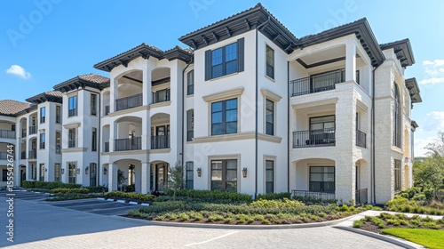 building, modern, architecture, exterior, white, facades, balcony, balcony, window, classic, stylish, luxury, residential, urban, sunny, daylight, detail, parking, landscaping, plant, curved, driveway, stone, archway, entrance, multistorey, roomy, clean, contemporary, structure, design, elevated, neat, bright, view, community, living, comfort, quality, property, development