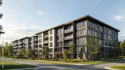 modern, apartment, building, architecture, design, exterior, facades, window, greenery, landscape, residential, urban, contemporary, neighbourhood, sunlight, sky, structure, line, glasses, style, symmetry, environment, community, road, landscaping, peaceful, roomy, sustainable, lifestyle, real estate, artwork, view, housing, urban living, serenity, modernist, tree, porch, balcony, space, city landscape, relaxing, new construction, investment, leisure, natural