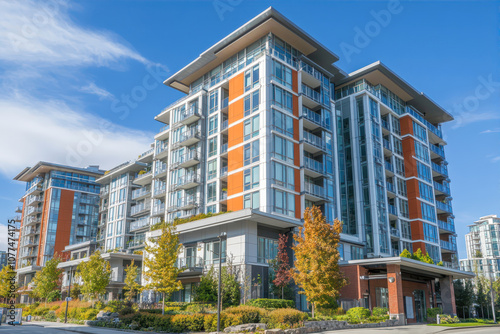 building, modern architecture, sunny day, blue skies, residential, urban living, greenery, city landscape, real estate, balcony, window, lifestyle, community, highrise, architectural style, nature, vivid colors, seasonal change, structure, skyline, city landscape, calmness, summer day, home, flats, investment, construction, neighbourhood, sunlight, leisure