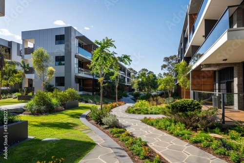 Modern Apartments and Serene Pathways in a New Development