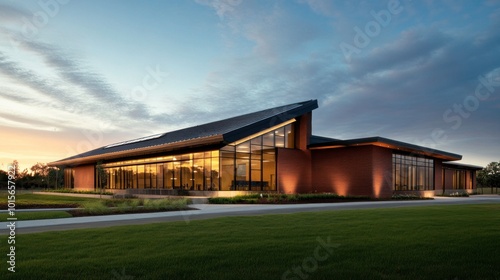 Modern Architectural Marvel Sustainable Design Meets Natural Beauty at Dusk