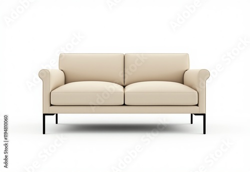 Modern Beige Sofa with Thin Metal Frame, Wide Cushions, and Minimalist Design on White Background