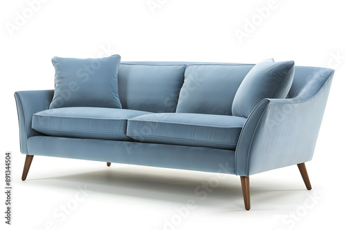 Modern Blue Sofa with Wooden Legs isolated on white background