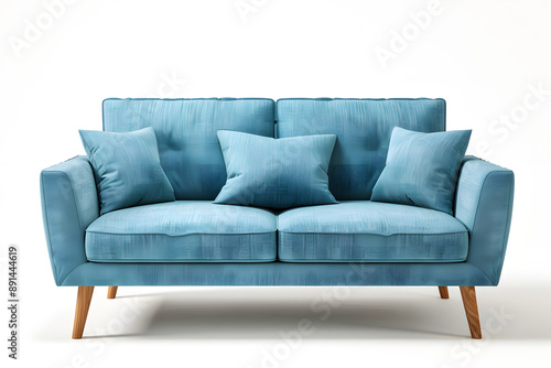 Modern Blue Sofa with Wooden Legs isolated on white background