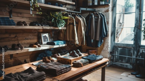 boutique, clothing, shoe, accessory, modern, interior, stylish, store, fashion, rustic, organised, retail, clean, soft light, shopping, contemporary, display, shelf, cosy, elegant, apparel, footwear, design, trendy, lifestyle, inviting, bright, comfortable