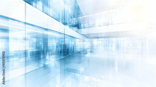 Modern, bright, and spacious office building interior with large windows and a clean, minimalist design.