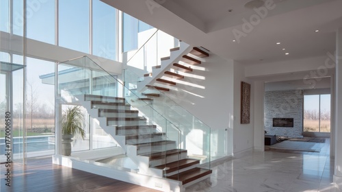 interior, staircase, design, modern, bright, roomy, home, architecture, decor, minimalist, glasses, wood, light, contemporary, stylish, living room, luxury, natural light, flooring, elegance, ambience, calmness, inviting, clean, line, aesthetic, cosy, comfort, functionality, recreation, vertical, indoor, feature, sophistication, view, serene, harmony, residential, airiness, beauty, space, furnishing, layout