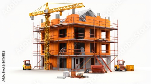 Modern building construction site with scaffolding and crane, showcasing ongoing architectural development and urban progress.