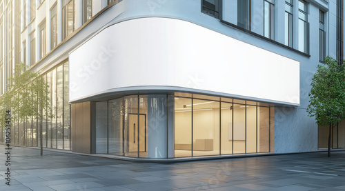 modern building, blank sign, exterior, city street, minimalist, daylight, greenery, facades, empty space, advertising, architecture, business building, retail, city landscape, modern architecture, inviting, city life, business, sunlight, roomy, professional, sleek, contemporary, design, city landscape, open space, bright