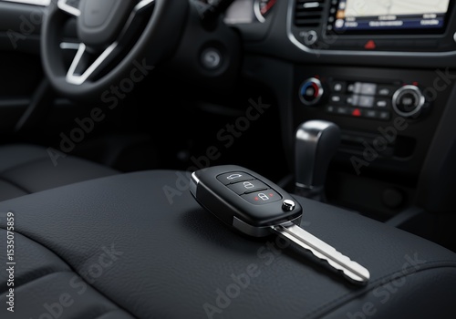 Modern Car Key on Leather Car Seat Interior Detail