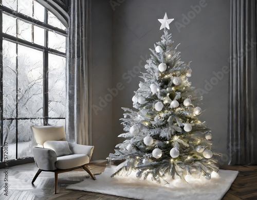 Modern Christmas Tree with Minimalist White and Silver Decorations Sleek and Stylish Design
