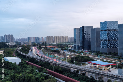 Modern city highway and office building