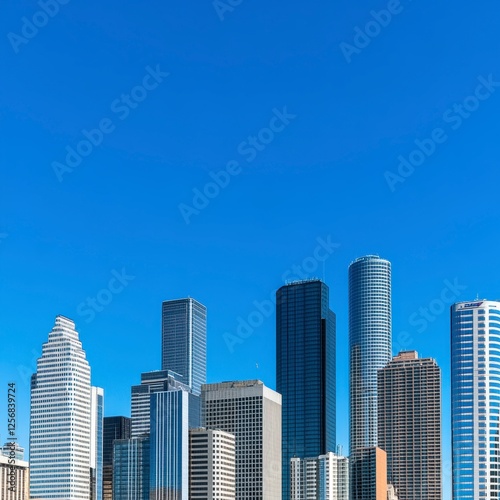 Modern City Skyline with Tall Buildings Against Clear Blue Sky