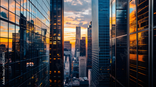 modern cityscape city commercial center urban dusk skyscrapers architecture landscape business corporate financial reflection sunset environment busy businessman working