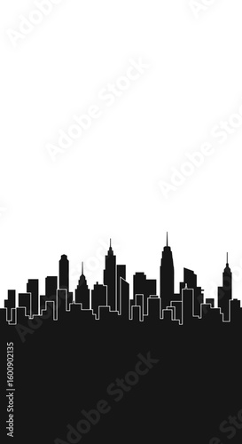 city landscape, silhouette, modern, urban, architecture, design, sky, white, black, building, skyscraper, metropolis, downtown, city, business, district, financial, center, corporate, structure, iconic, view, panorama, overview, horizon, background, vector, illustration, graphic, art, minimalist, clean, crisp, outline, contrast, highrise, concrete, glasses, steel, abstract, zenith, vertical, perspective, tall