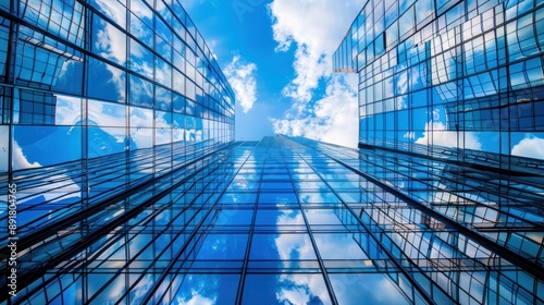skyscraper, building, glasses, city, architecture, urban, modern, blue, sky, cloud, window, facades, structure, design, geometric, steel, concrete, highrise, tower, business, office, commercial, downtown, metropolis, horizon, panorama, daylight, daytime, bright, view, perspective, upward, angle, line, pattern, abstract