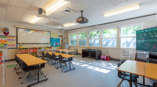 Modern Classroom with Interactive Energy-Saving Technologies Teaching Conservation Concepts