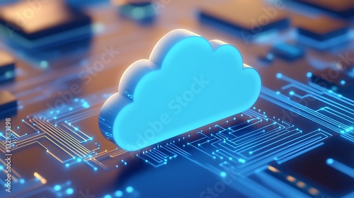 Modern Cloud Computing Concept with Digital Circuitry and Blue Cloud Icon on Futuristic Background