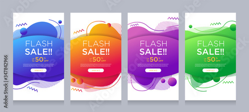 Modern colorful advertising poster for flash sale banners with dynamic shape. Sale banner template design, Flash sale special offer set
