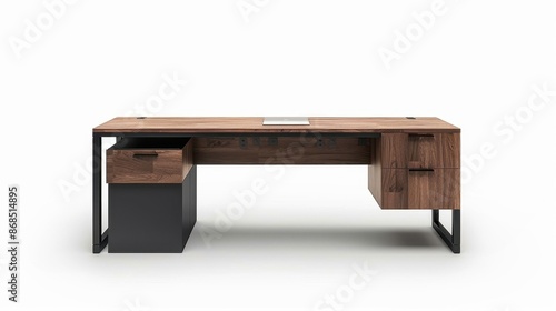 Modern Desk isolate on white background: Contemporary desk in metal or glass, featuring minimalist elegance with clean lines, ideal for modern and streamlined office spaces.