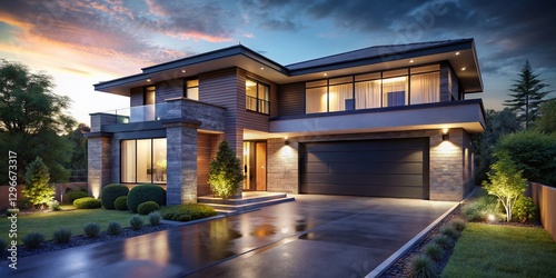 night photography, exterior, driveway, home, architecture, real estate, night, building, modern architecture, residential, property, contemporary, luxury home, night time, urban, suburban, lighting, design, elegant, sleek, facades, landscape, street, house, house for sale, new home