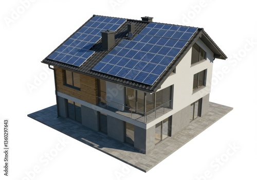 Modern eco-friendly home with solar panels on rooftop for sustainable living