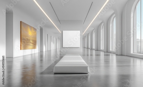 modern, empty, room, blank, canvas, tiled, wall, lighting, interior, design, abstract, contemporary, architecture, clean, space, gallery, exhibit, floor, nobody, indoor, background, business, place, light, concept, creative, digital, display, hallway, isolated, poster, banner, frame, screen, promotion, billboard, subway, white, grey, blue, three-dimensional, render, illustration