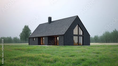 house, modern, farmhouse, rural, landscape, countryside, home, design, architecture, exterior, minimalist, contemporary, building, stone, wood, window, grass, field, sky, light, evening, dawn, dusk, nature, tranquil, serene, peaceful, property, illustration, three-dimensional, render, image, view, scenic, bungalow, dwelling