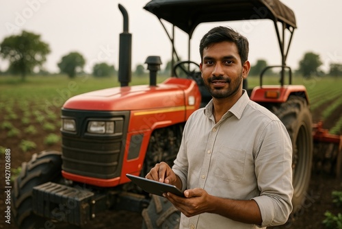 transportation, professional, agriculture, innovation, lawn mower, technology, authentic, realistic, outdoors, digital, farming, tractor, vehicle, create, device, farmer, indian, modern, person, tablet, adult, asian, brand, field, grass, human, image, photo, plant, rural, using, lawn, logotype, male, text, tool, man, advertisement, agricultural